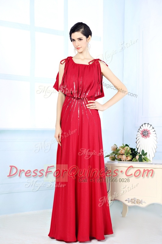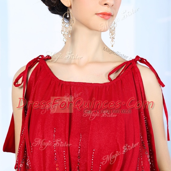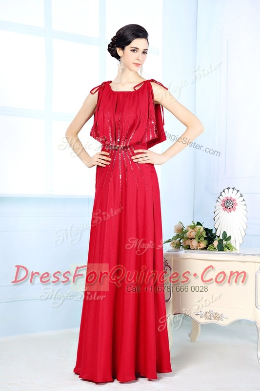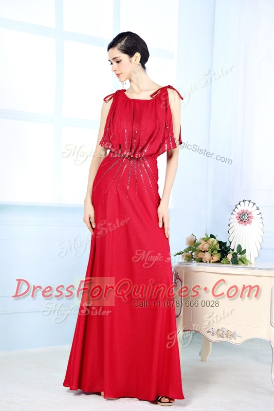 New Style Red Scoop Neckline Beading Prom Party Dress Sleeveless Side Zipper