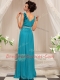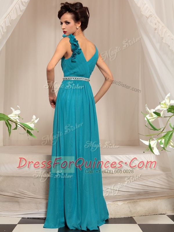 New Style V-neck Sleeveless Prom Dress Floor Length Ruffles Teal Chiffon