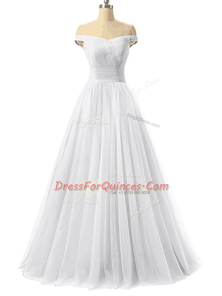 Nice White Sleeveless Ruching Floor Length Prom Party Dress