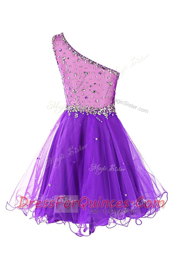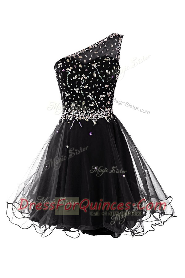 One Shoulder Black Sleeveless Organza Side Zipper Prom Party Dress for Prom and Party