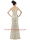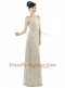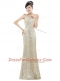 One Shoulder Champagne Column/Sheath Beading and Sequins Prom Gown Zipper Sequined Sleeveless Floor Length