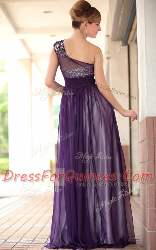 One Shoulder Sleeveless Side Zipper Floor Length Beading and Appliques Evening Dress