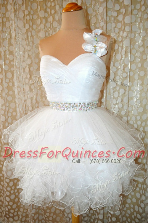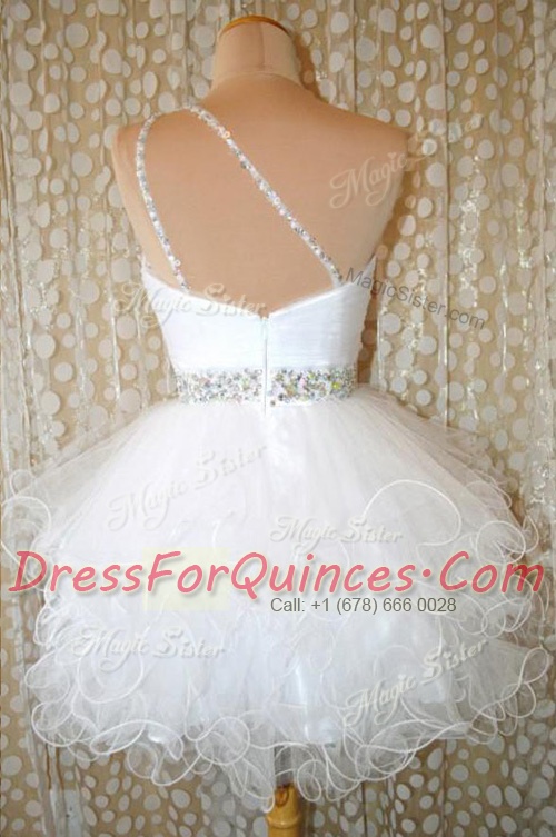 One Shoulder White Sleeveless Beading Mini Length Prom Evening Gown