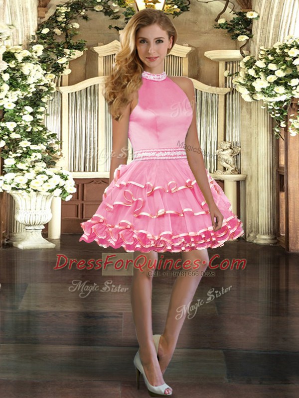 Organza Sleeveless Mini Length Prom Gown and Beading and Ruffled Layers