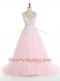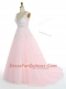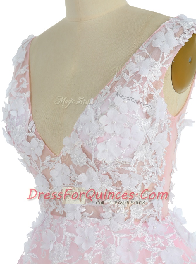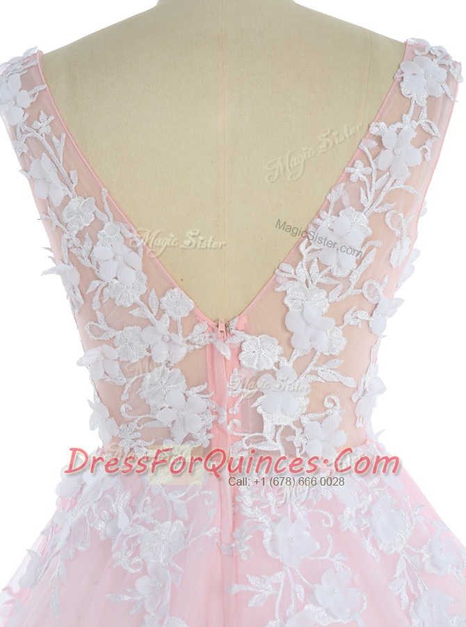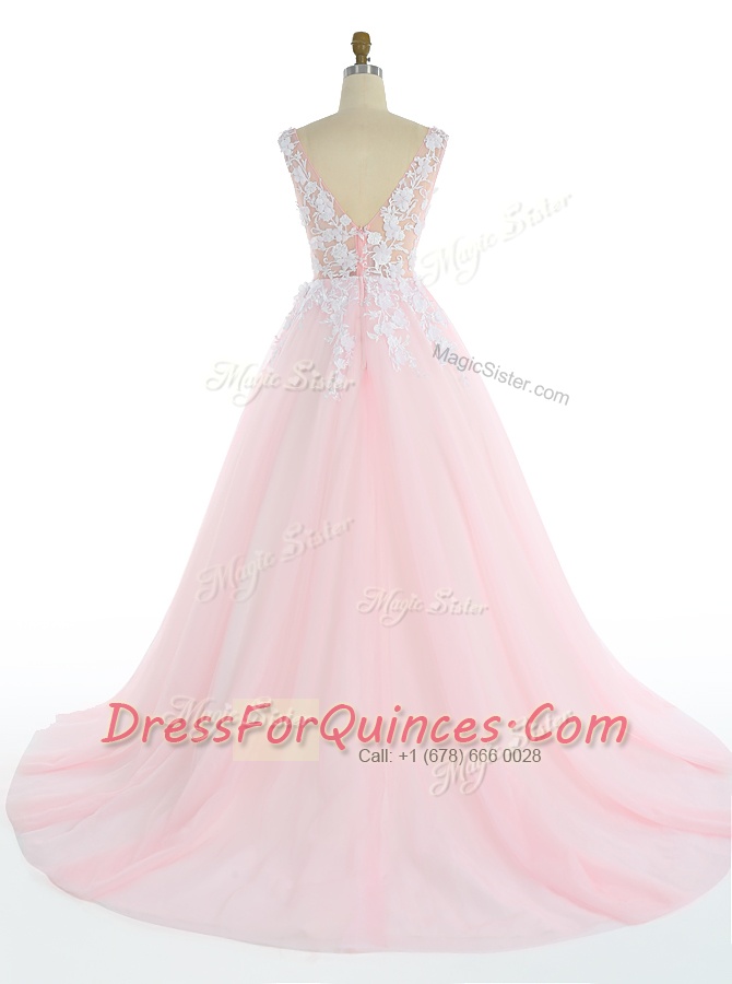 Pink Sleeveless Sweep Train Appliques With Train Prom Gown