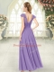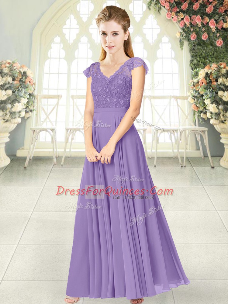 Popular Cap Sleeves Chiffon Ankle Length Zipper in Lavender with Lace