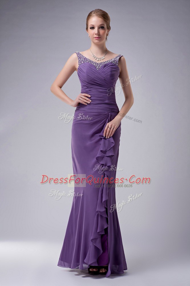 Popular Green Chiffon Zipper Straps Sleeveless Floor Length Prom Evening Gown Beading