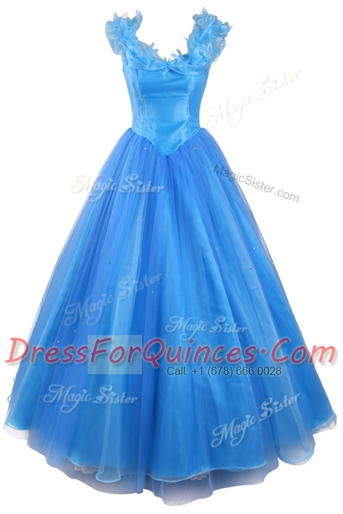 Popular Pick Ups Floor Length A-line Sleeveless Baby Blue Prom Dresses Zipper