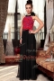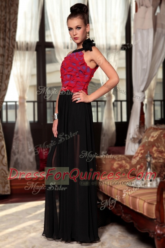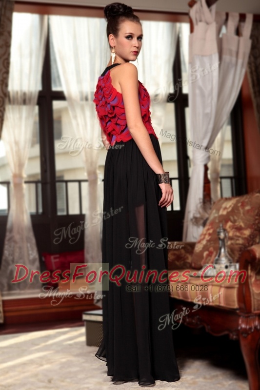 Red And Black Scoop Side Zipper Ruching and Hand Made Flower Evening Dress Sleeveless