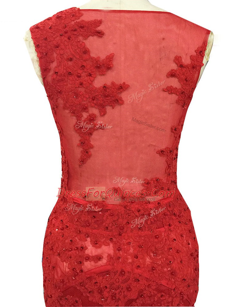 Red Column/Sheath Tulle Square Sleeveless Lace Zipper Homecoming Dress Brush Train