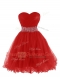 Red Empire Organza Sweetheart Sleeveless Belt Mini Length Lace Up Dress for Prom
