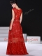 Red V-neck Neckline Sequins Prom Gown Sleeveless Zipper