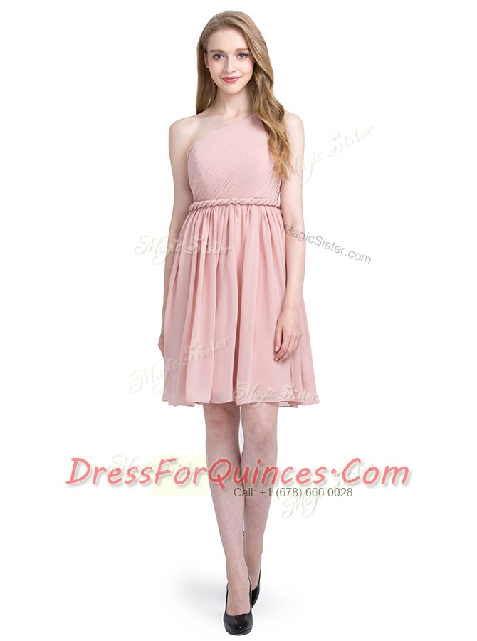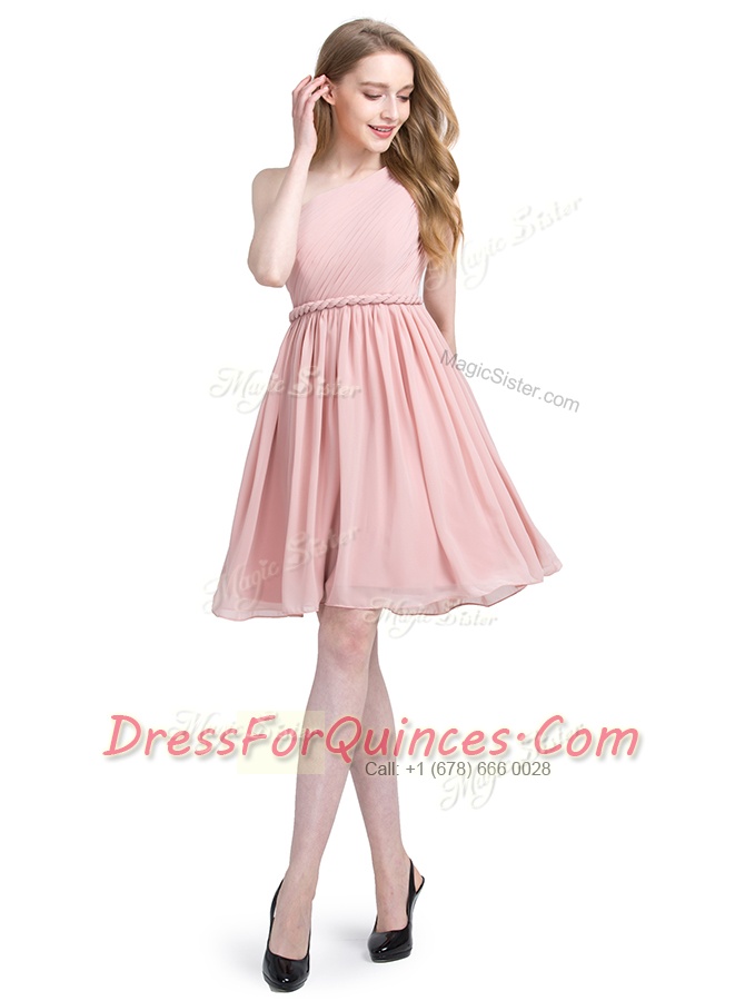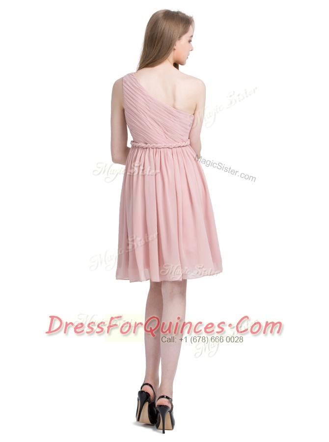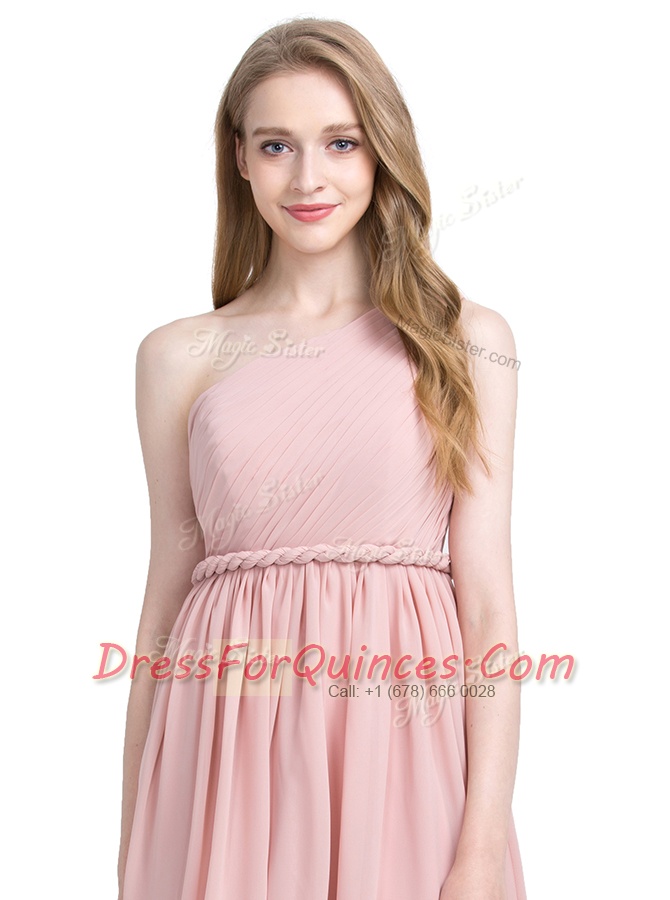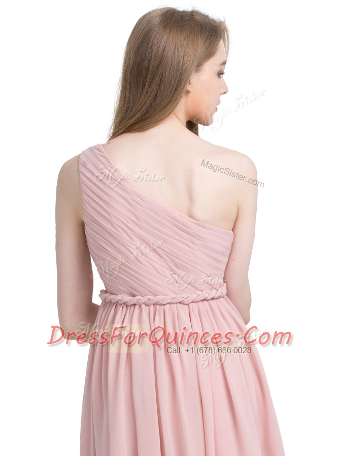 Romantic Pink One Shoulder Neckline Ruching Prom Evening Gown Sleeveless Side Zipper