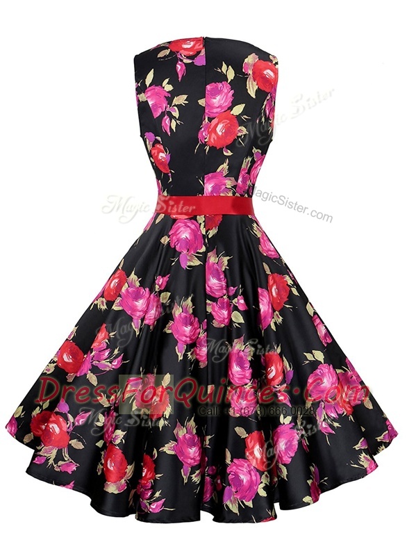 Scoop Knee Length A-line Sleeveless Multi-color Zipper