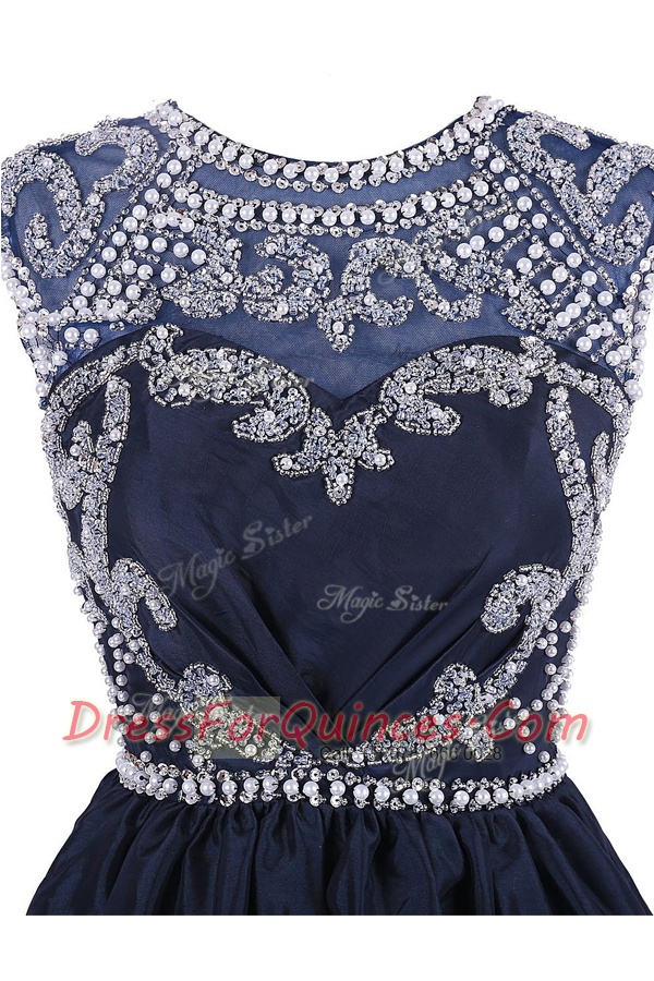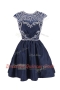 Scoop Satin Cap Sleeves Knee Length Prom Dresses and Beading
