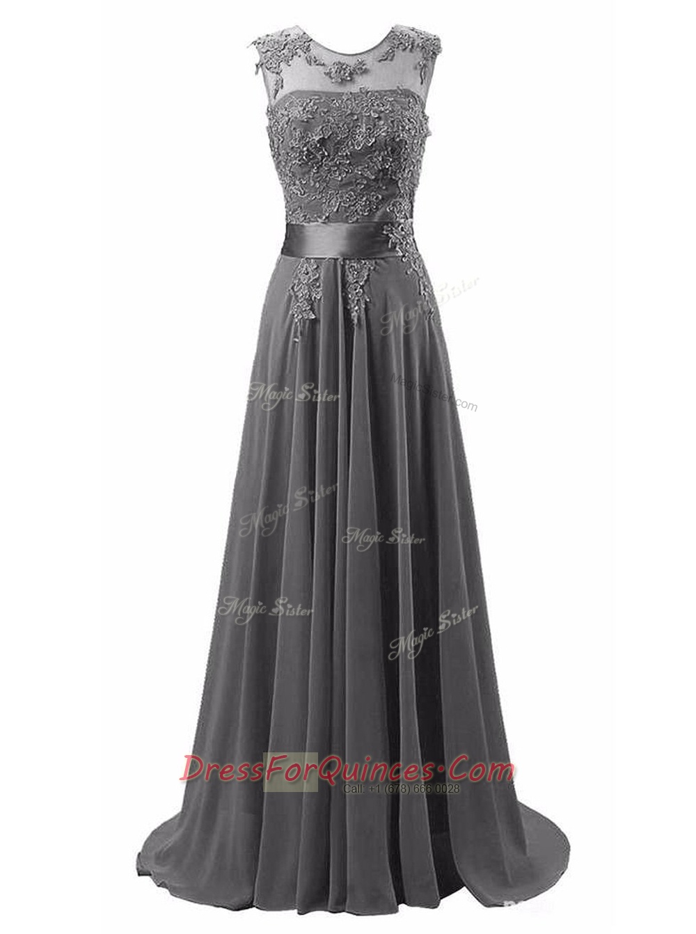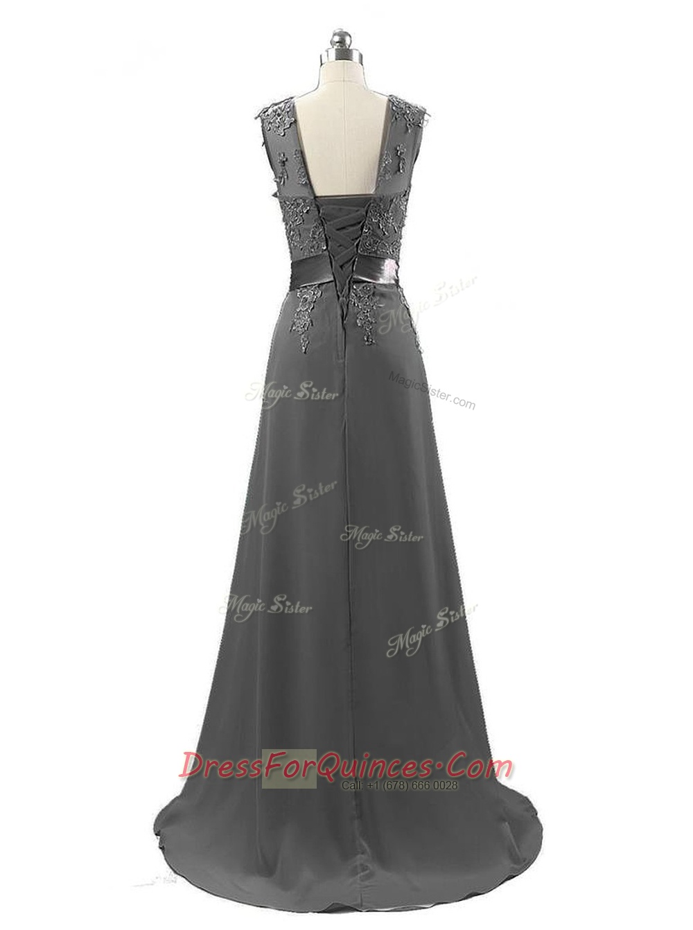 Scoop Sleeveless Brush Train Beading and Appliques Lace Up Homecoming Dress