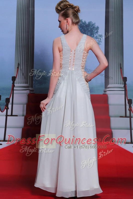 Scoop Sleeveless Side Zipper Floor Length Beading and Appliques and Ruching Prom Dress