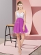 Sexy Fuchsia Empire One Shoulder Sleeveless Chiffon Mini Length Criss Cross Beading Dress for Prom