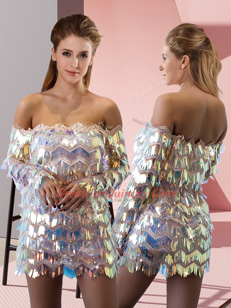 Silver Prom Dress Prom and Party with Ruching Off The Shoulder Long Sleeves
