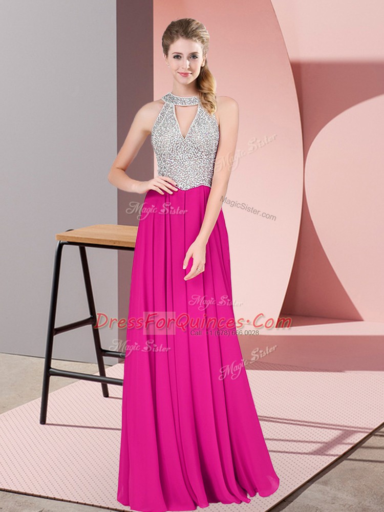 Sleeveless Zipper Floor Length Beading Homecoming Dress
