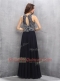 Spectacular Halter Top Sleeveless Chiffon Floor Length Backless Evening Dress in Black with Beading