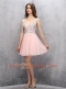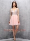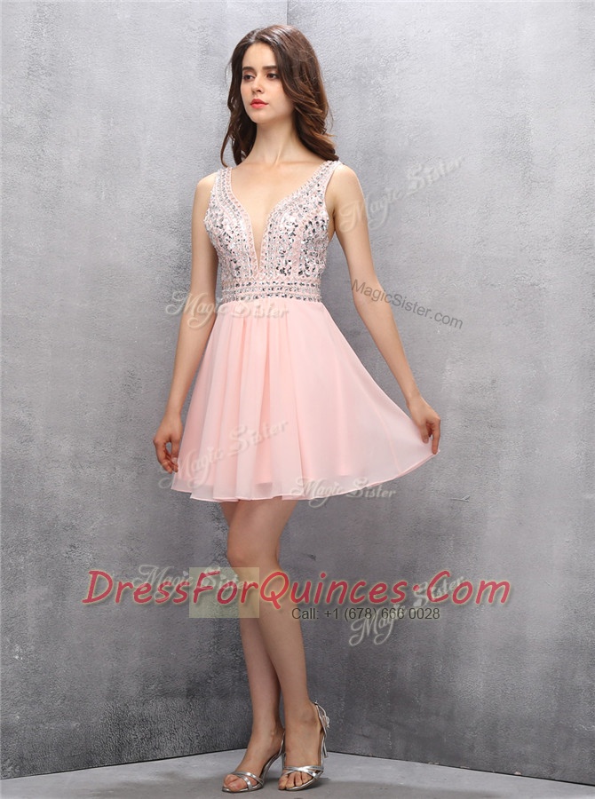 Stunning Sleeveless Chiffon Knee Length Zipper Prom Party Dress in Baby Pink with Beading