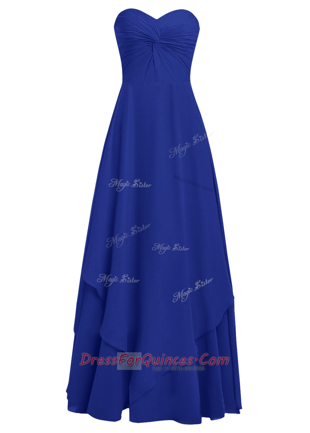 Sweetheart Sleeveless Prom Evening Gown Floor Length Ruffles Royal Blue Chiffon