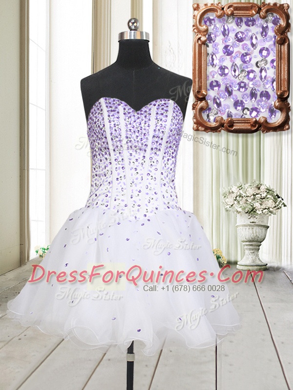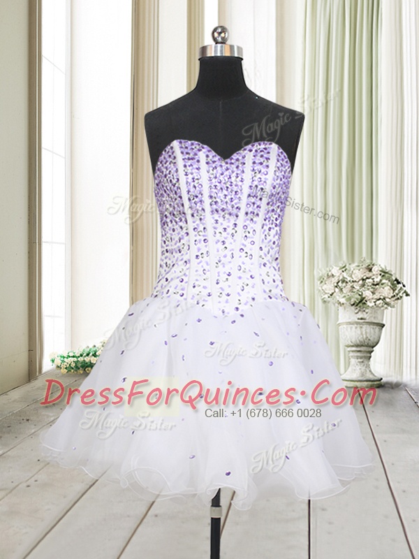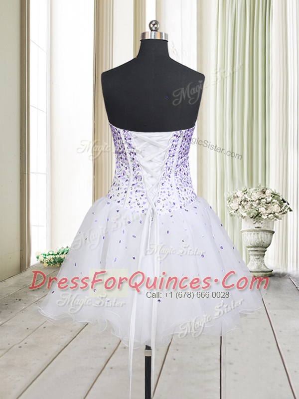 Top Selling White A-line Sweetheart Sleeveless Organza Mini Length Lace Up Beading Prom Gown