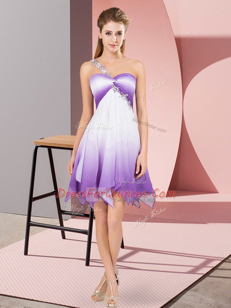 Trendy Multi-color Lace Up One Shoulder Beading Prom Dress Fading Color Sleeveless