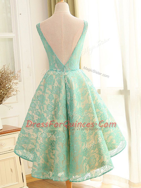 Turquoise A-line Lace and Appliques Evening Dress Backless Lace Sleeveless High Low