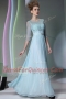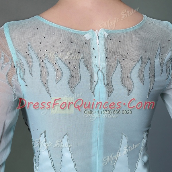 Vintage Scoop Light Blue Zipper Beading Half Sleeves Ankle Length