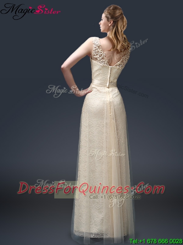2016 Empire Lace Prom Dresses with Appliques in Champagne