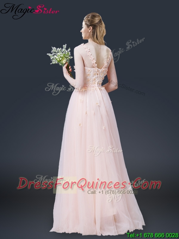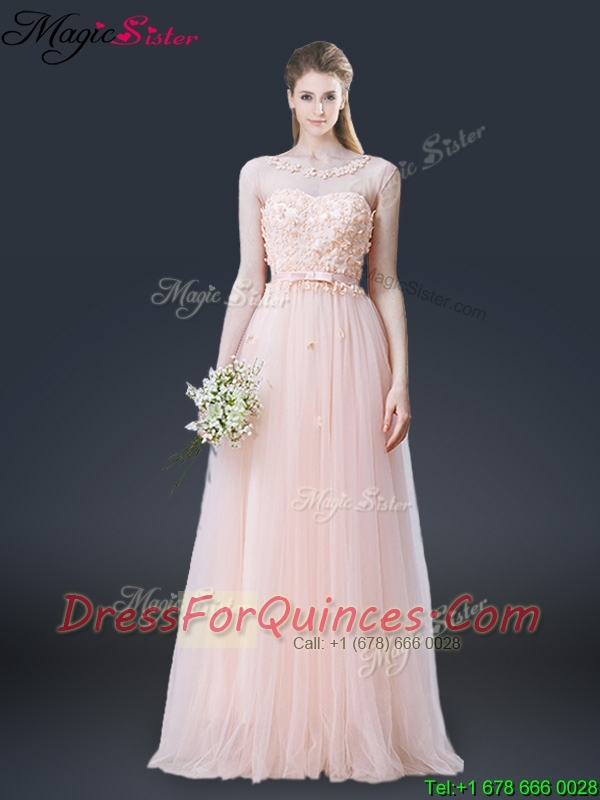 2016 Lovely Empire Bateau Prom Dresses with Appliques and Bowkno