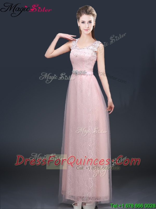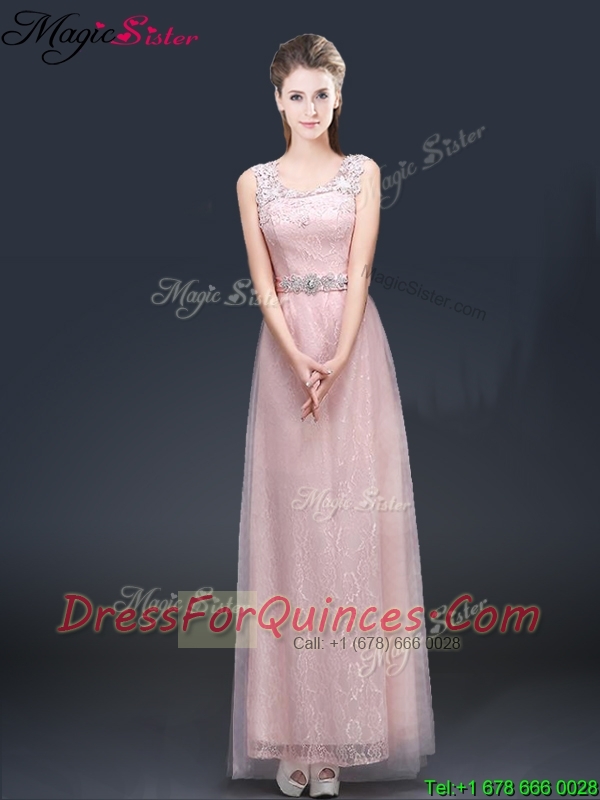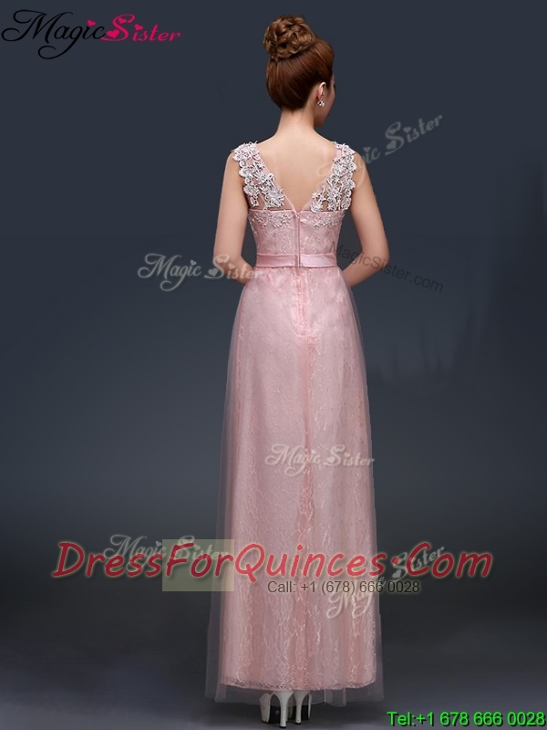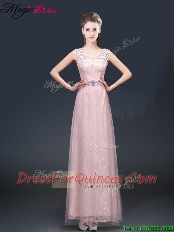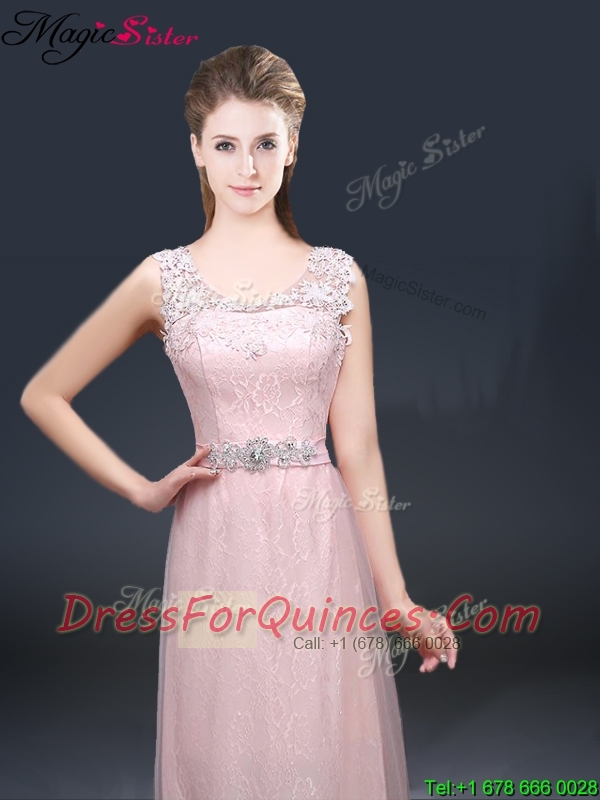 2016 Pretty Empire Scoop Prom Dresses with Lace and Appliques