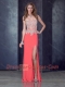 Column Watermelon Red Prom Dress with High Slit and Appliques
