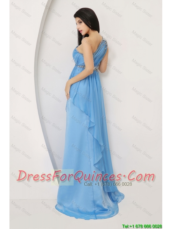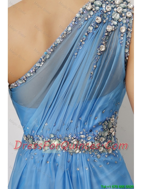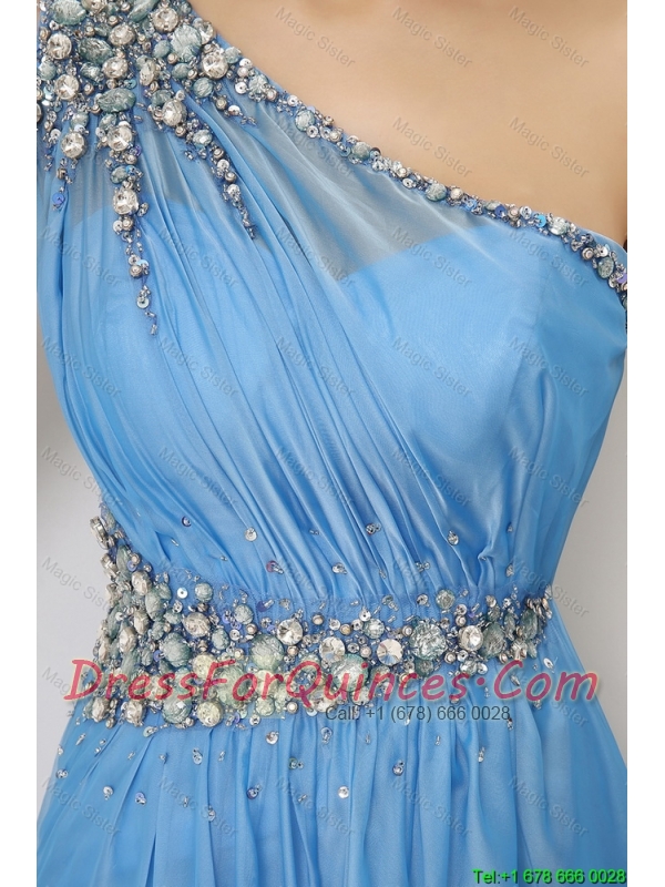 Discount Beaded Baby Blue Prom Dresses with One Shoulder