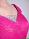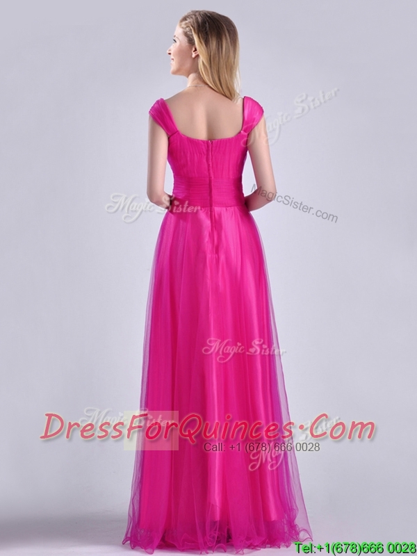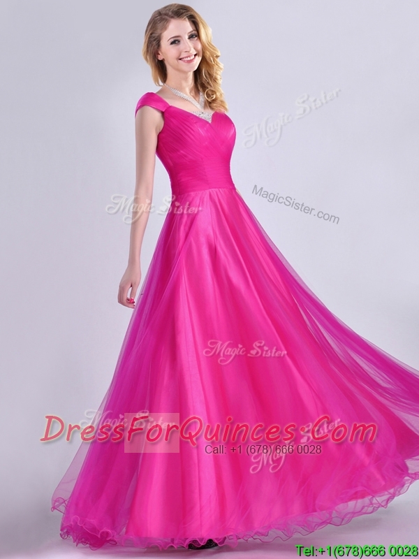 Exclusive Organza Beaded Top Hot Pink Prom Dress with Cap Sleeves