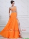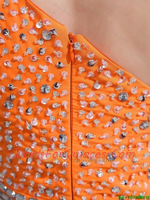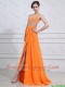 Exquisite Beading and High Slit Orange Prom Dresses with Brush Train