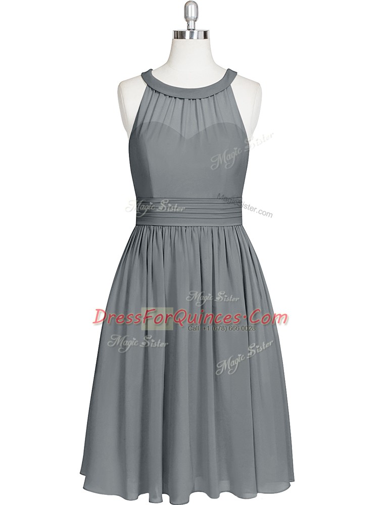 Grey Dress for Prom Prom and Party and Military Ball with Ruching Halter Top Sleeveless Zipper