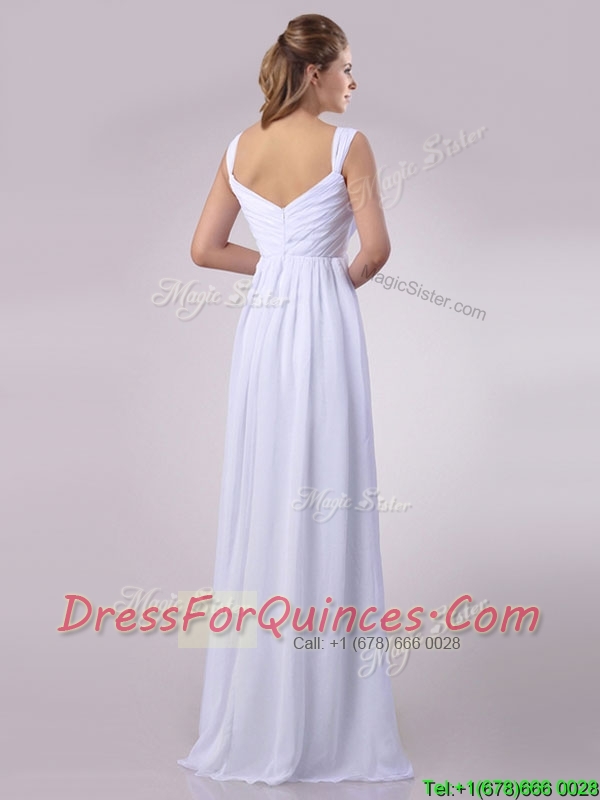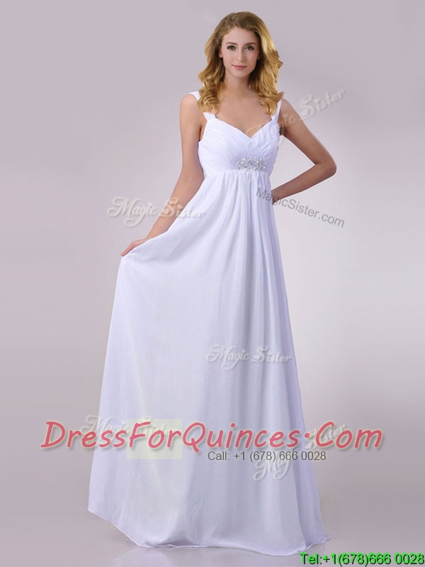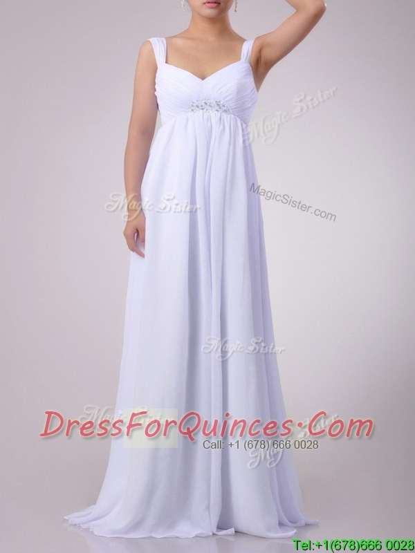 Hot Sale Empire Beaded White Chiffon Prom Dress with Straps