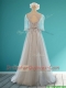 Luxurious Scoop Half Sleeves Grey Prom Dresses with Appliques and Belt