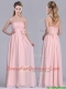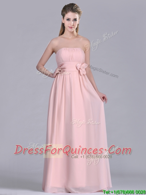 Modern Chiffon Handcrafted Flowers Long Prom Dress in Baby Pink