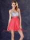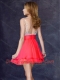 Modest Backless V Neck Sequined Short Prom Dress in Coral Red