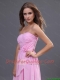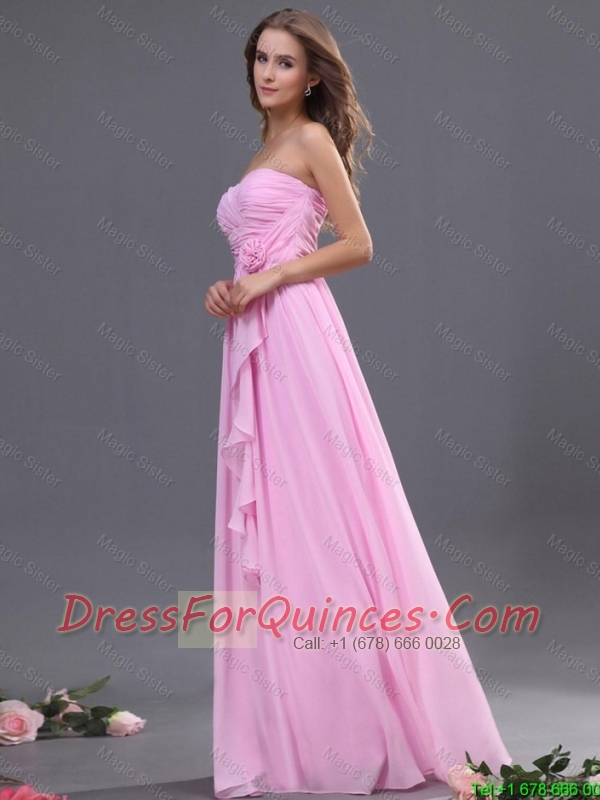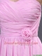 Modest Ruching and Hand Made Flower Prom Dress in Rose Pink