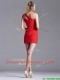 New Arrivals Side Zipper One Shoulder Red Prom Dress with Beading
