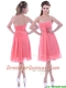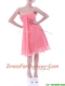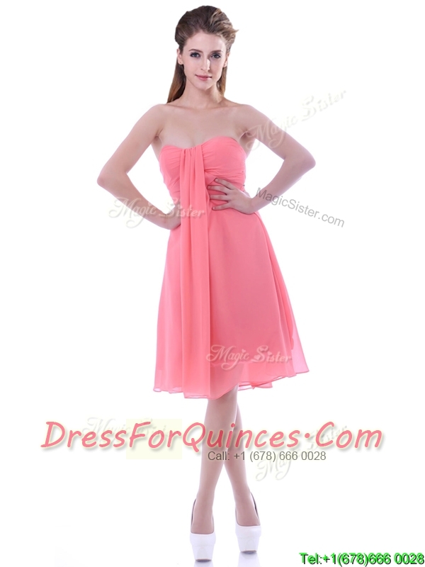 Popular Empire Chiffon Ruched Watermelon Prom Dress in Knee Length