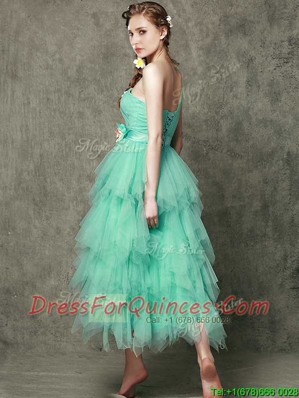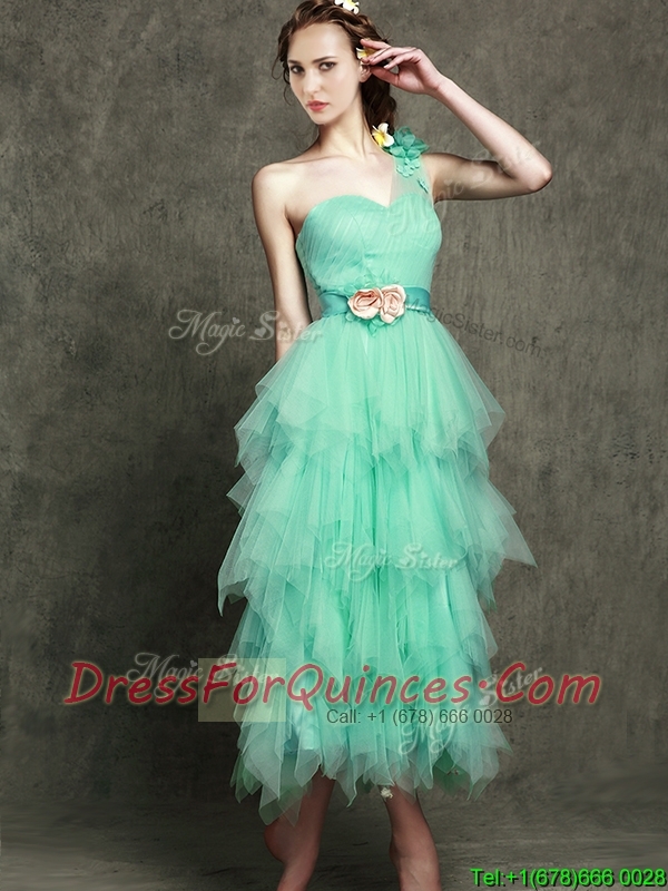 Popular One Shoulder Prom Dresses with Ruffled Layers and Hand Made Flowers