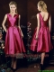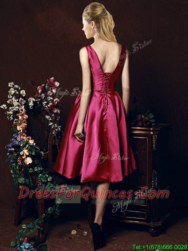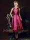 Popular V Neck Knee Length Bowknot Prom Dresses in Fuchsia