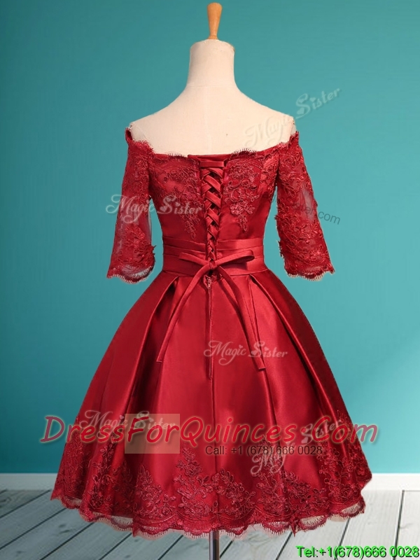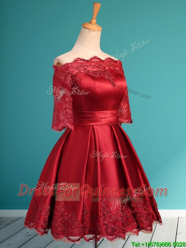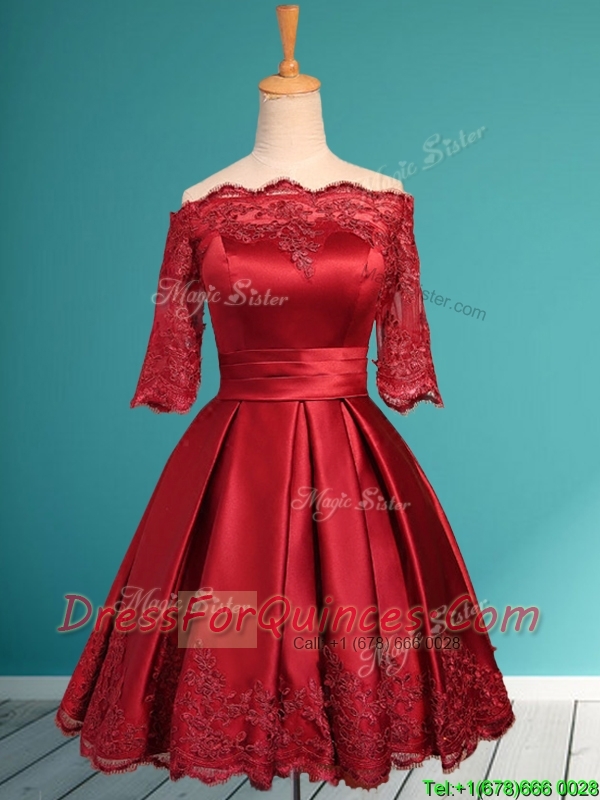 Romantic Off the Shoulder Half Sleeves Prom Dresses with Lace and Belt