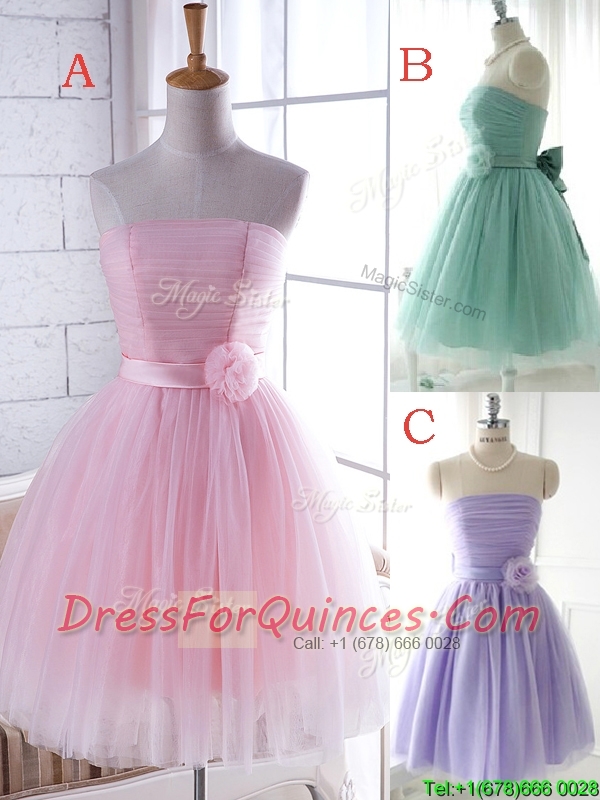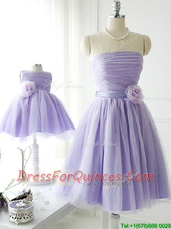 Simple Handcrafted Flower Tulle Lavender Prom Dresses with Strapless
